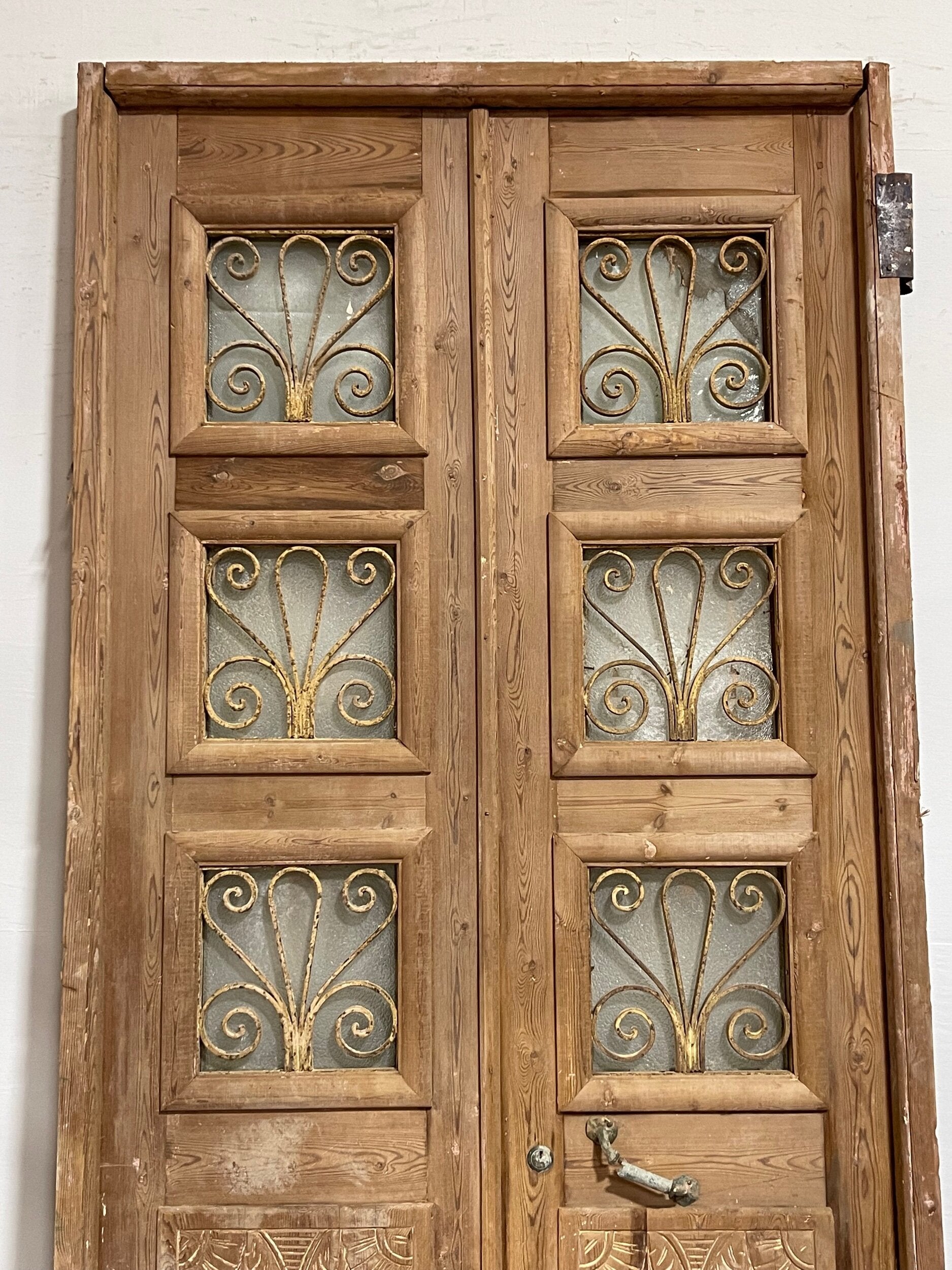 Antique French doors imported from Egypt, made out of massive East European pine. These doors were pulled out of a building and are architectural salvage. They are not not brand new and has wear and tear.