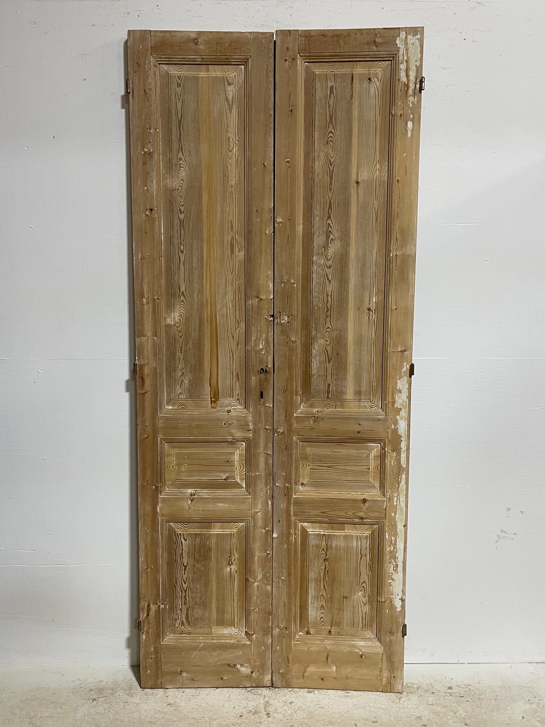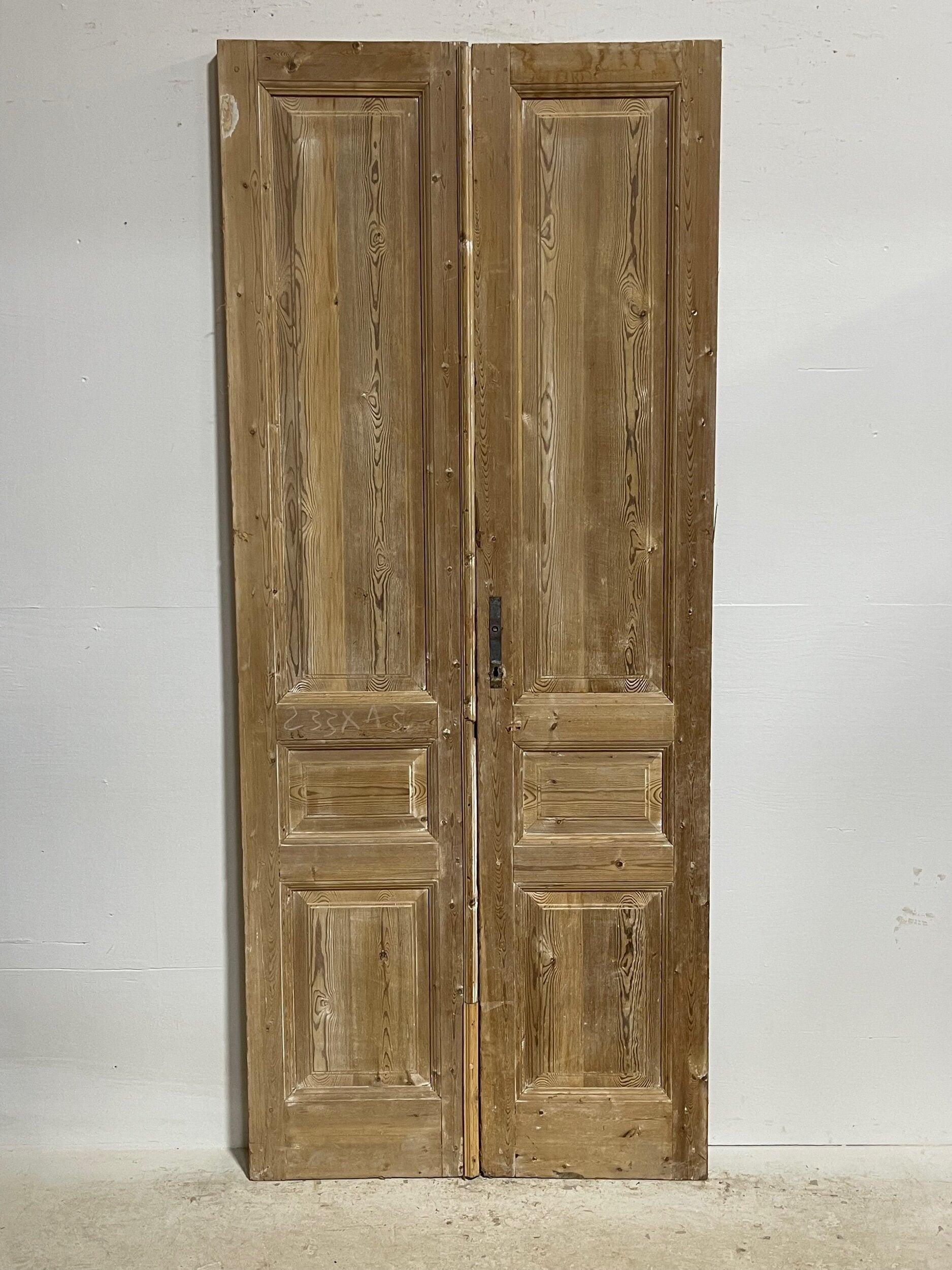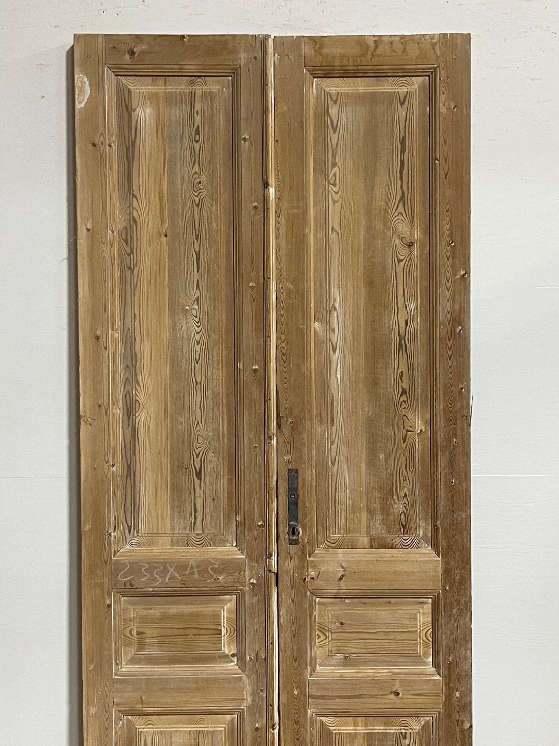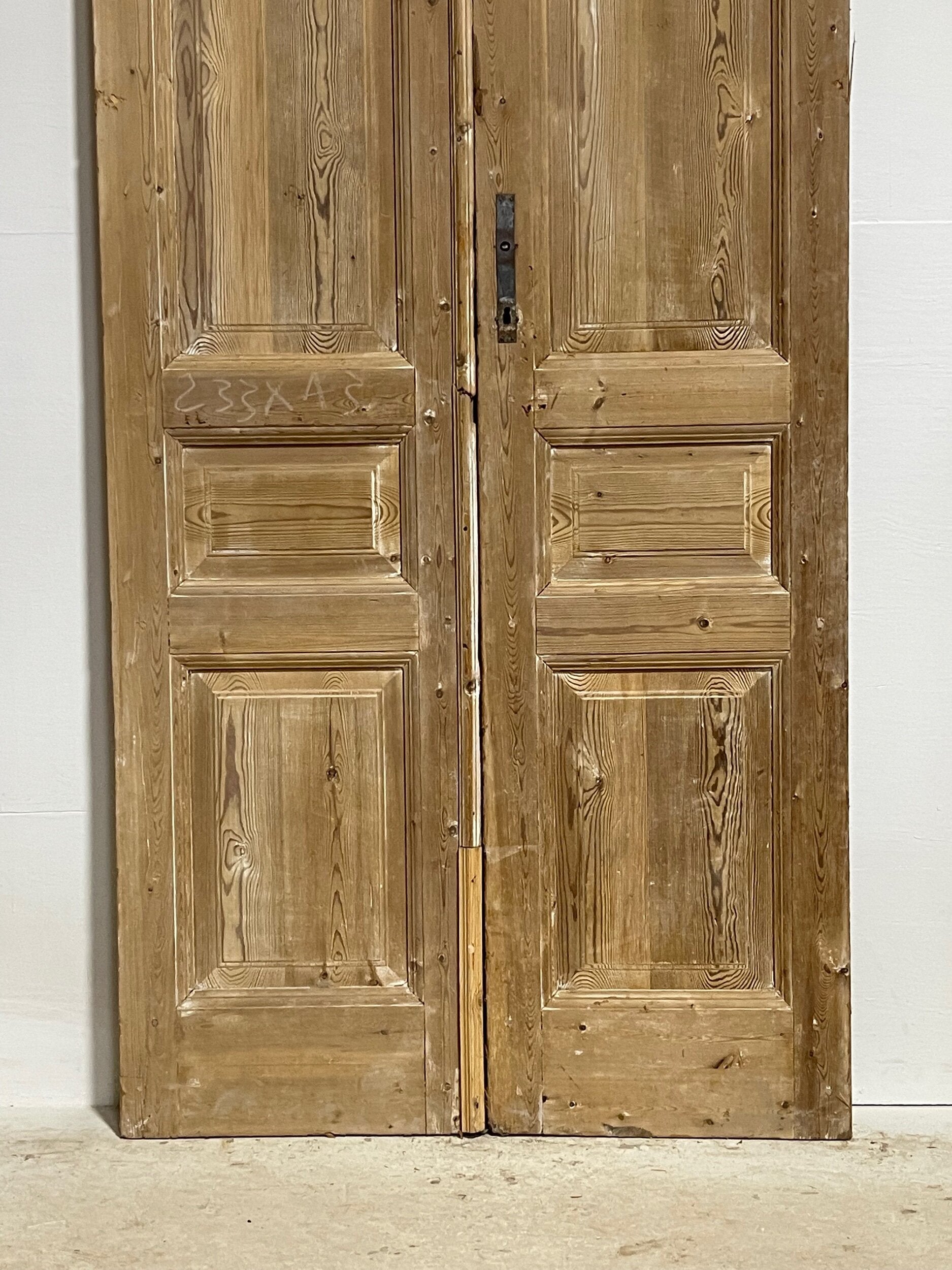Antique French doors imported from Egypt, made out of massive East European pine. These doors were pulled out of a building and are architectural salvage. They are not not brand new and has wear and tear.