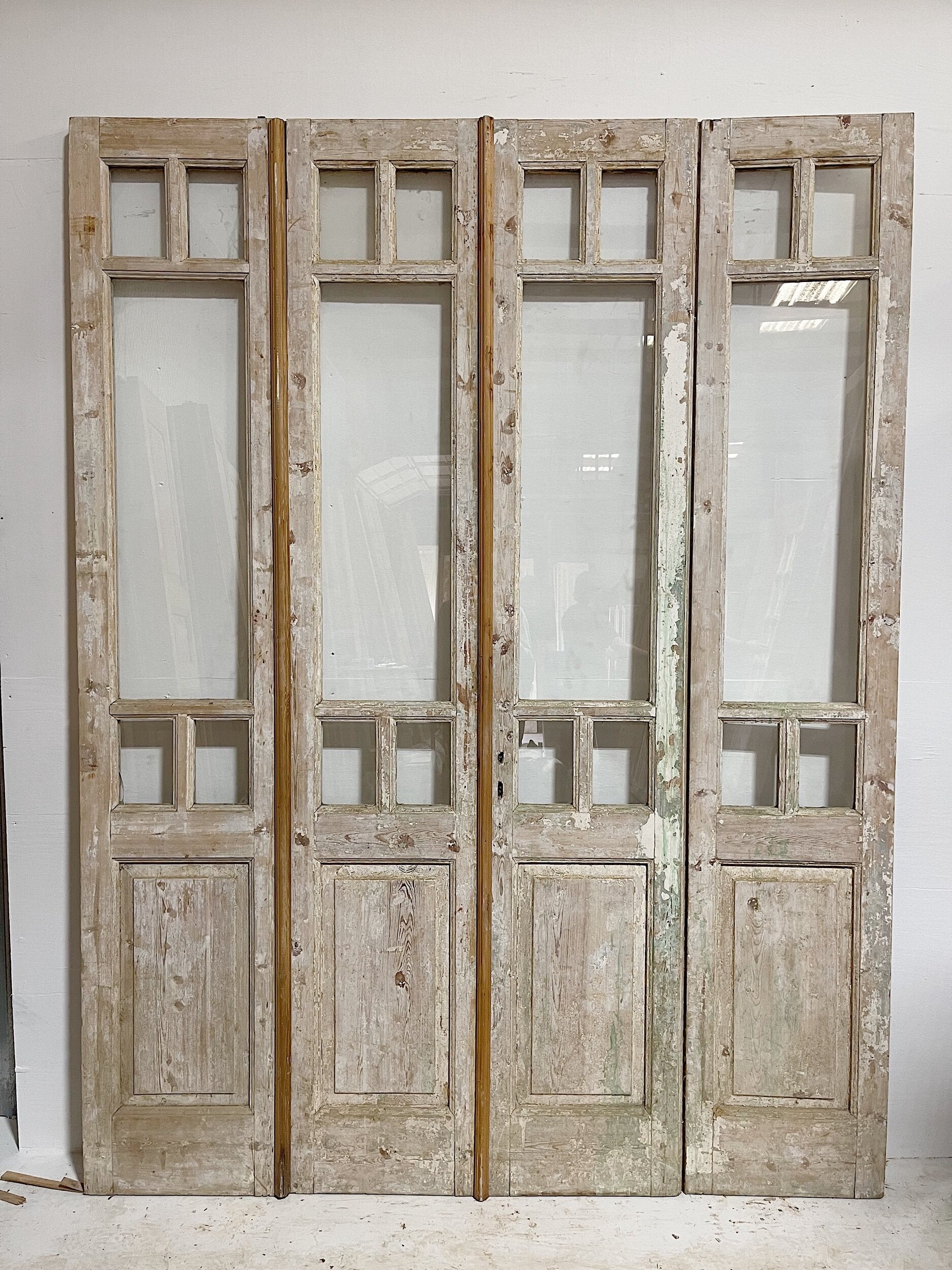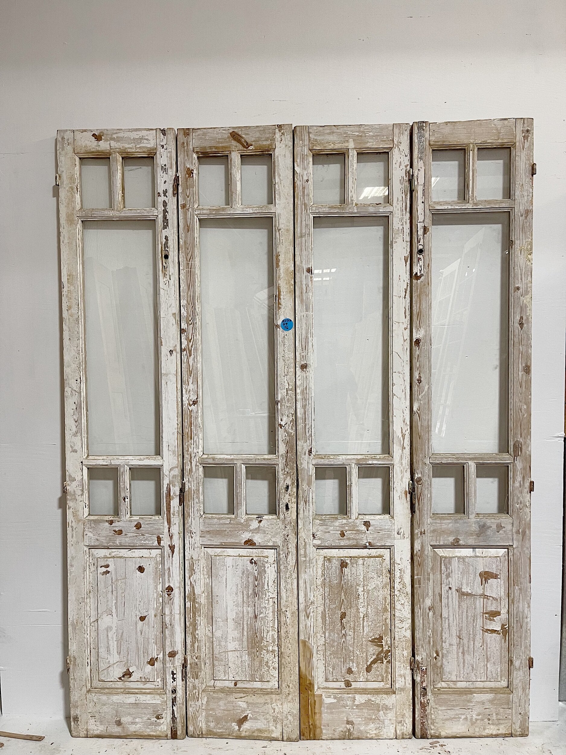 Antique French doors (99x76) with glass, 4 piece set E1122