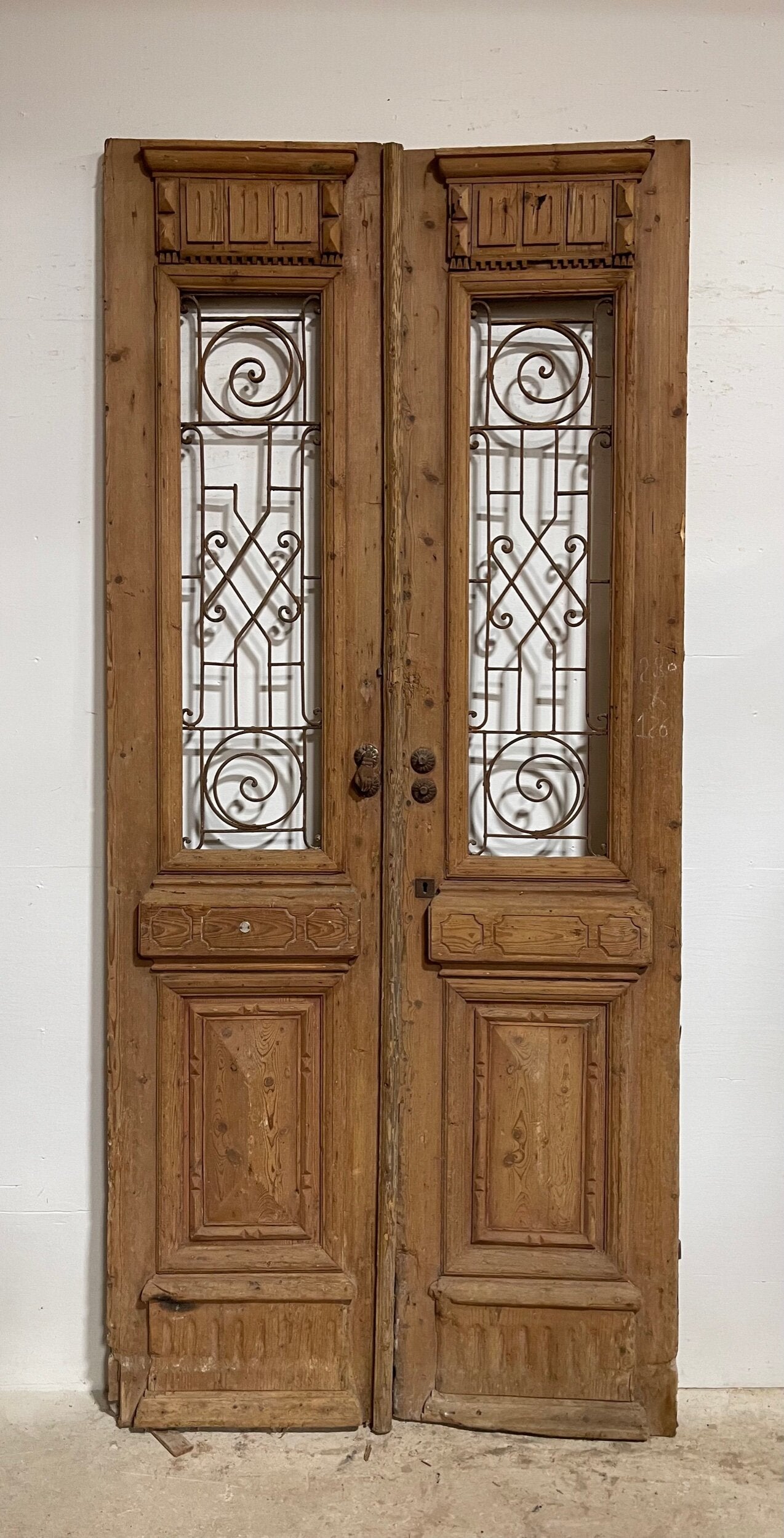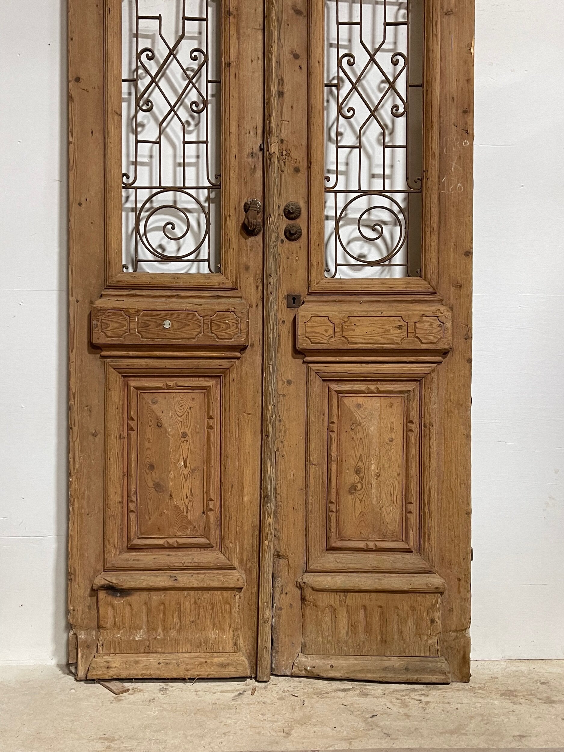 Antique French doors imported from Egypt, made out of massive East European pine. These doors were pulled out of a building and are architectural salvage. They are not not brand new and has wear and tear.