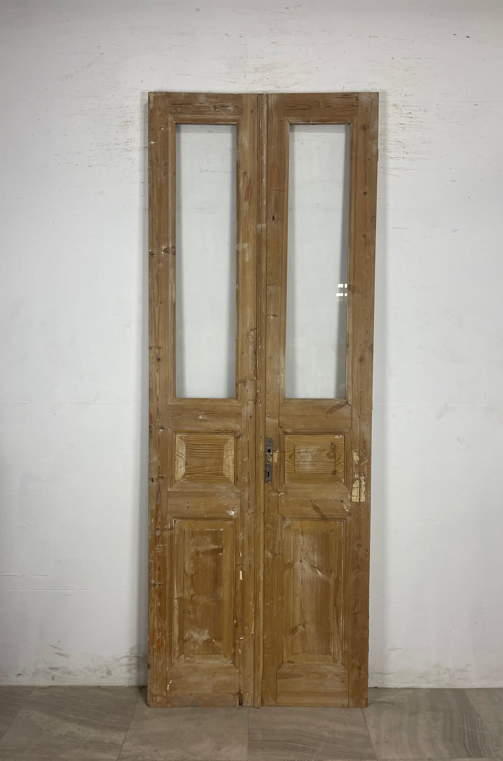 Antique French Panel Doors with glass (96.5 x 35.5) N154