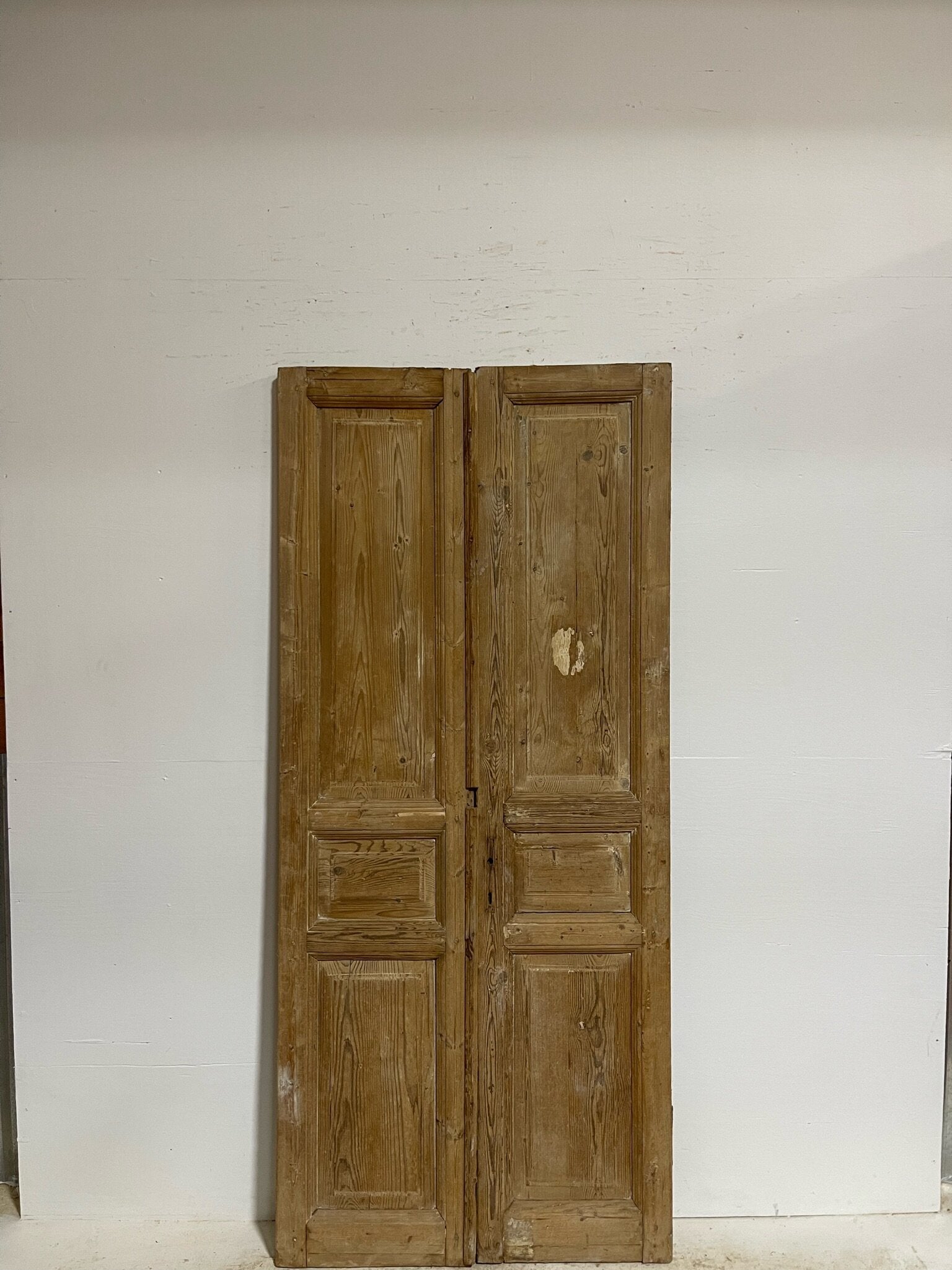 Antique French doors imported from Egypt, made out of massive East European pine. These doors were pulled out of a building and are architectural salvage. They are not not brand new and has wear and tear.