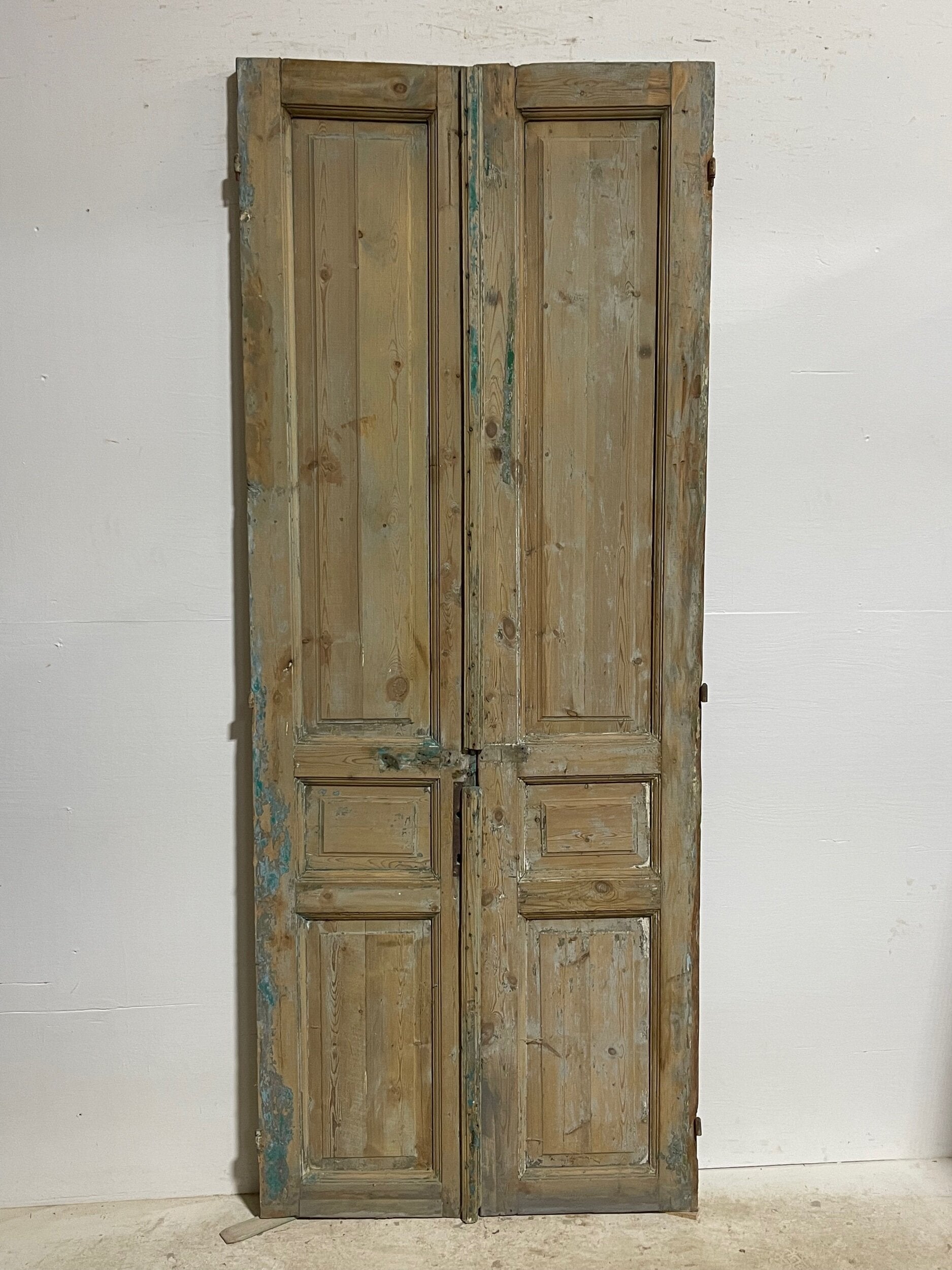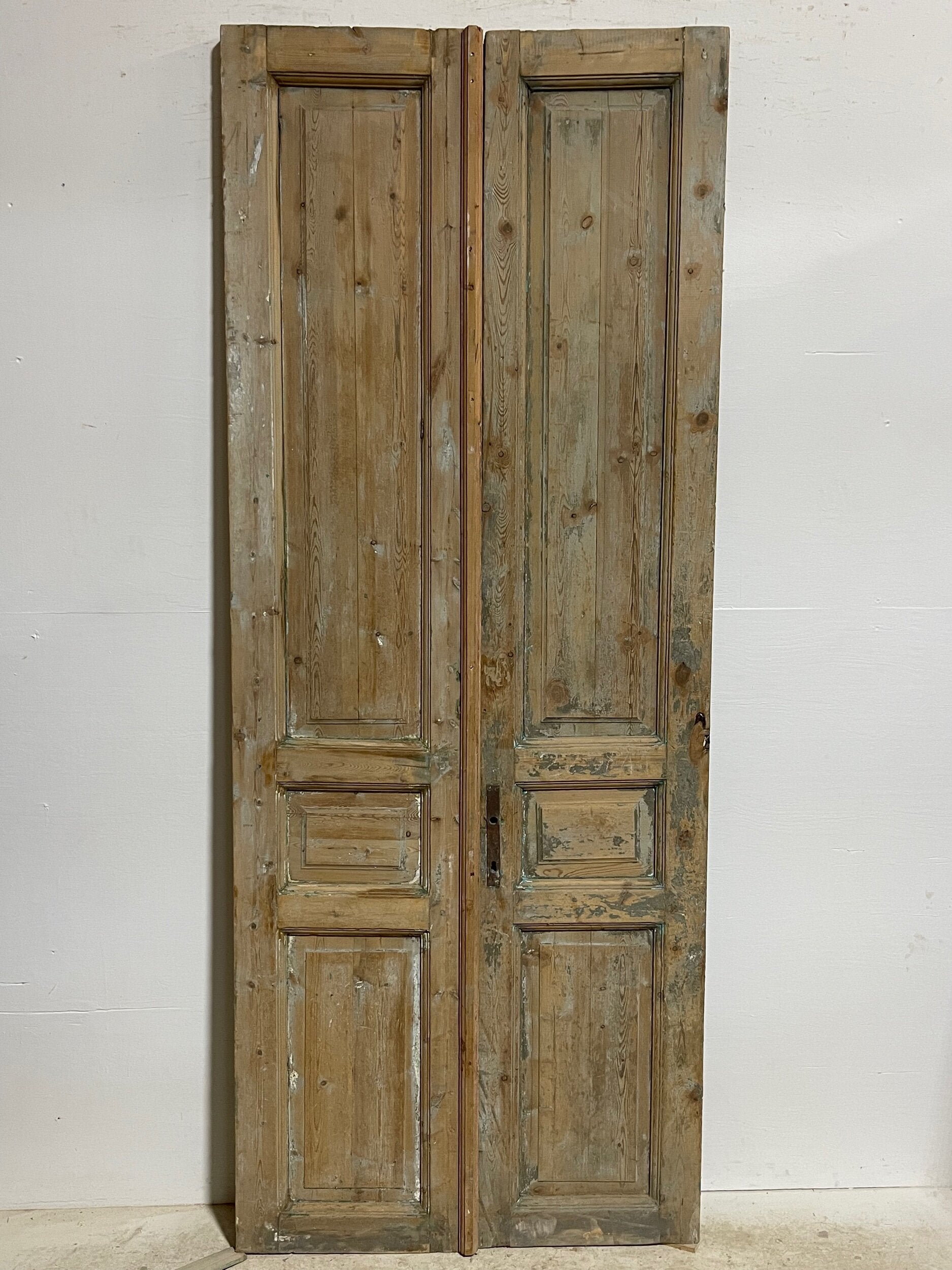 Antique French doors imported from Egypt, made out of massive East European pine. These doors were pulled out of a building and are architectural salvage. They are not not brand new and has wear and tear.