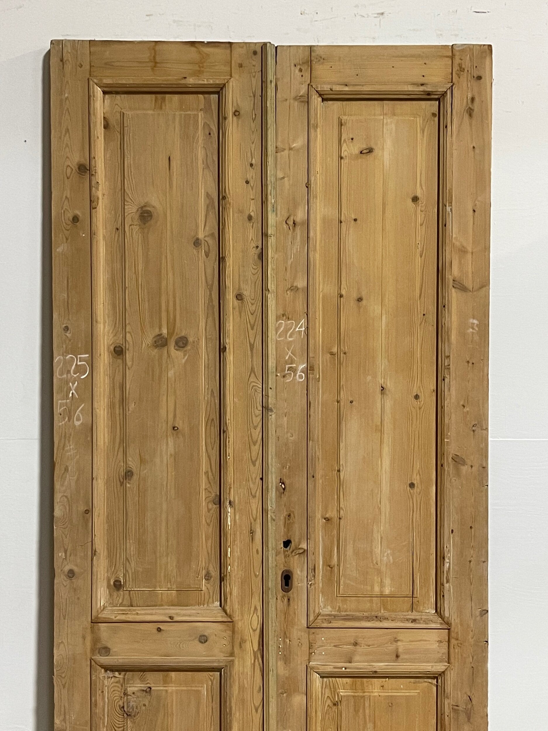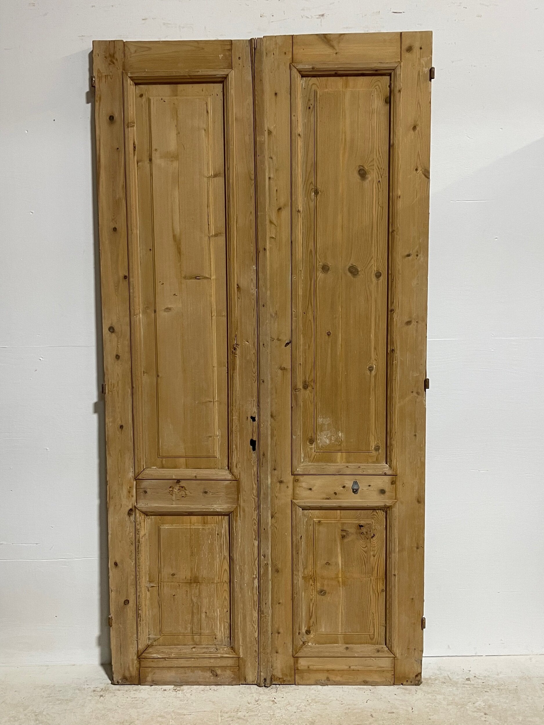 Antique French doors imported from Egypt, made out of massive East European pine. These doors were pulled out of a building and are architectural salvage. They are not not brand new and has wear and tear.