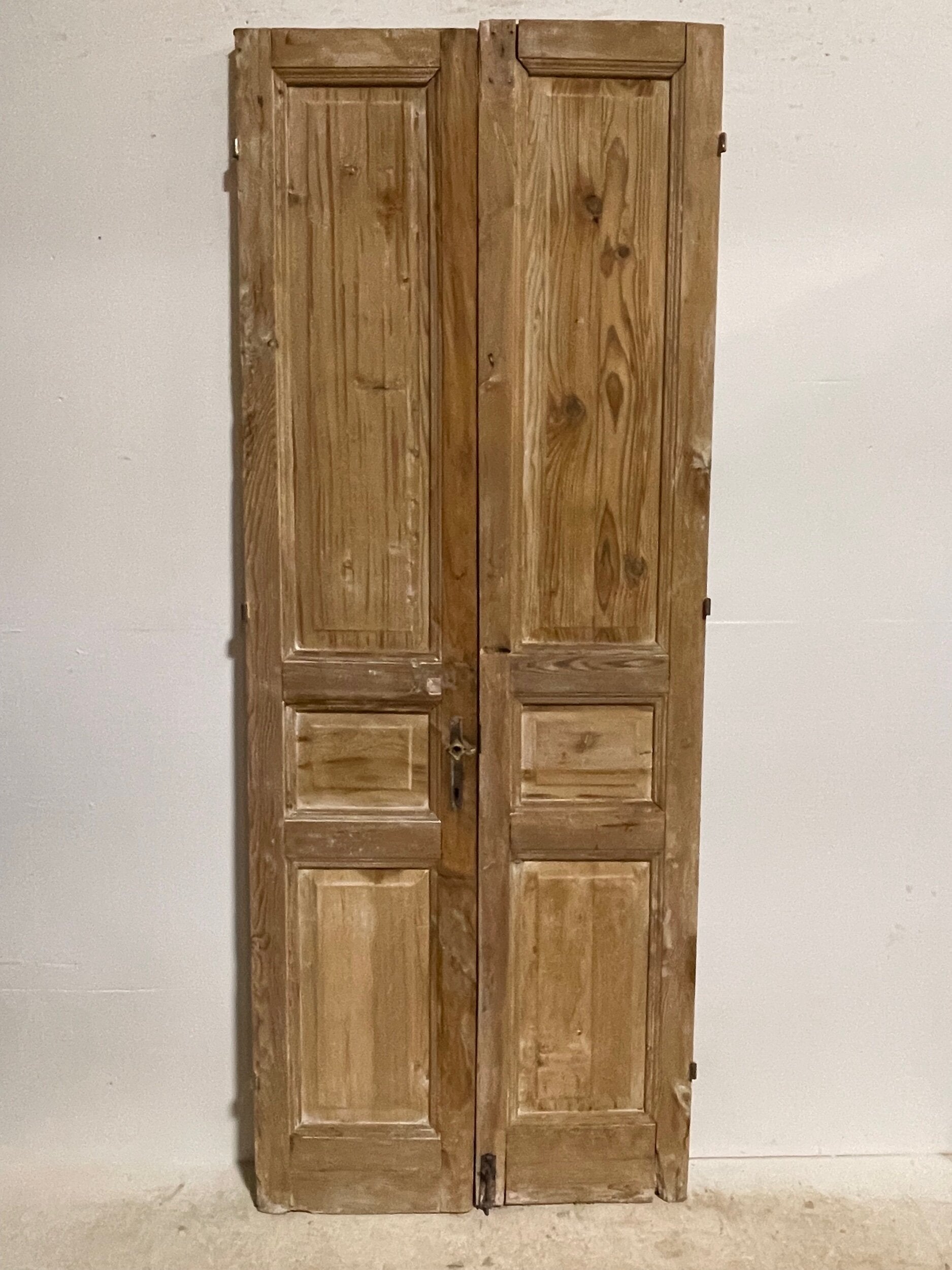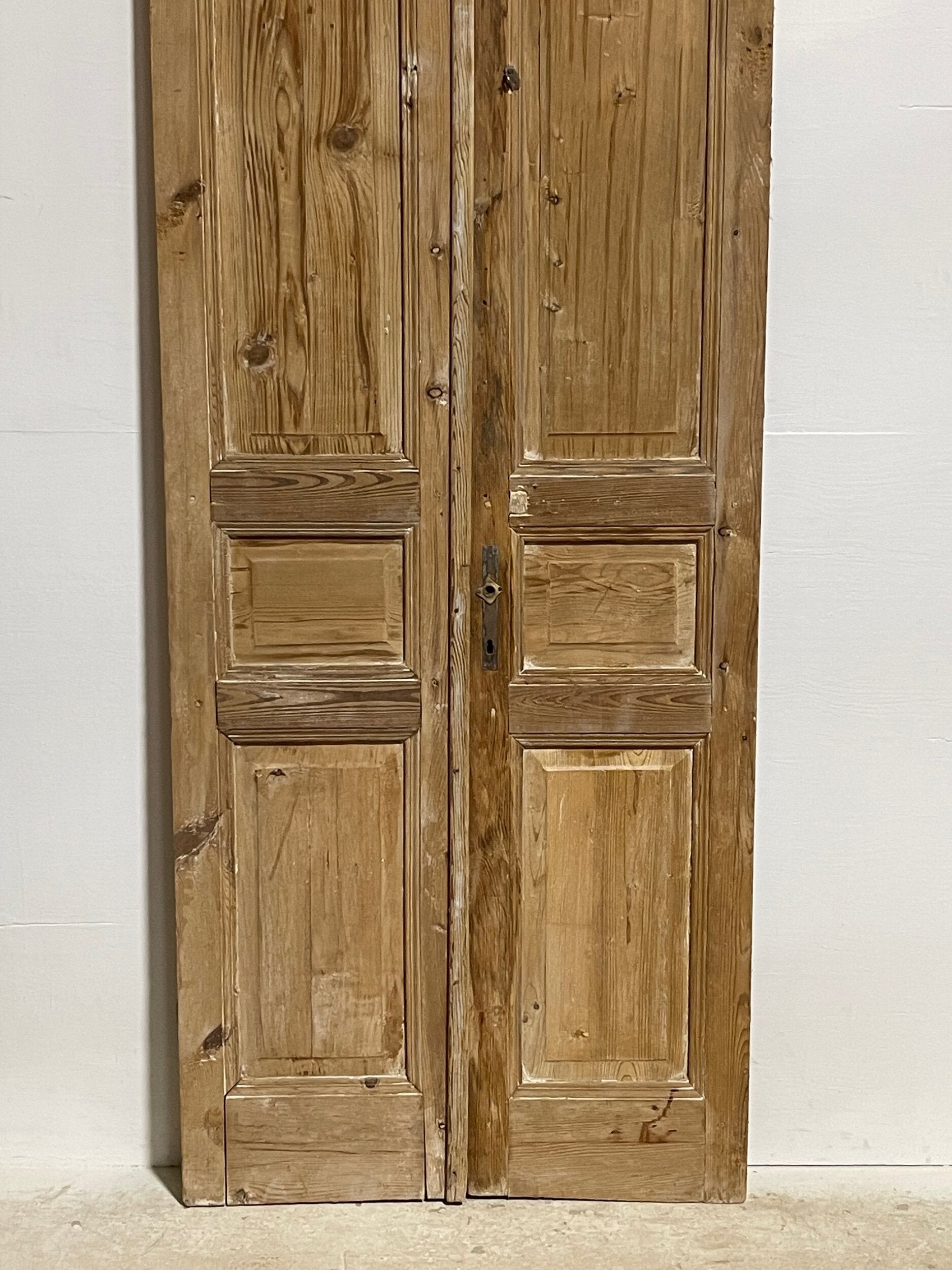 Antique French doors imported from Egypt, made out of massive East European pine. These doors were pulled out of a building and are architectural salvage. They are not not brand new and has wear and tear.