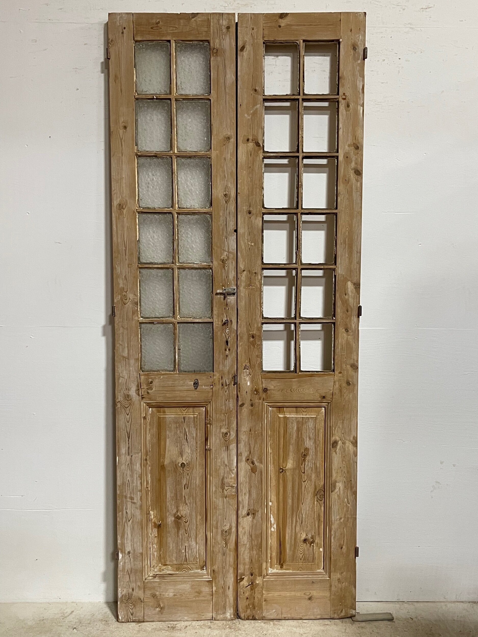 Antique French doors imported from Egypt, made out of massive East European pine. These doors were pulled out of a building and are architectural salvage. They are not not brand new and has wear and tear.