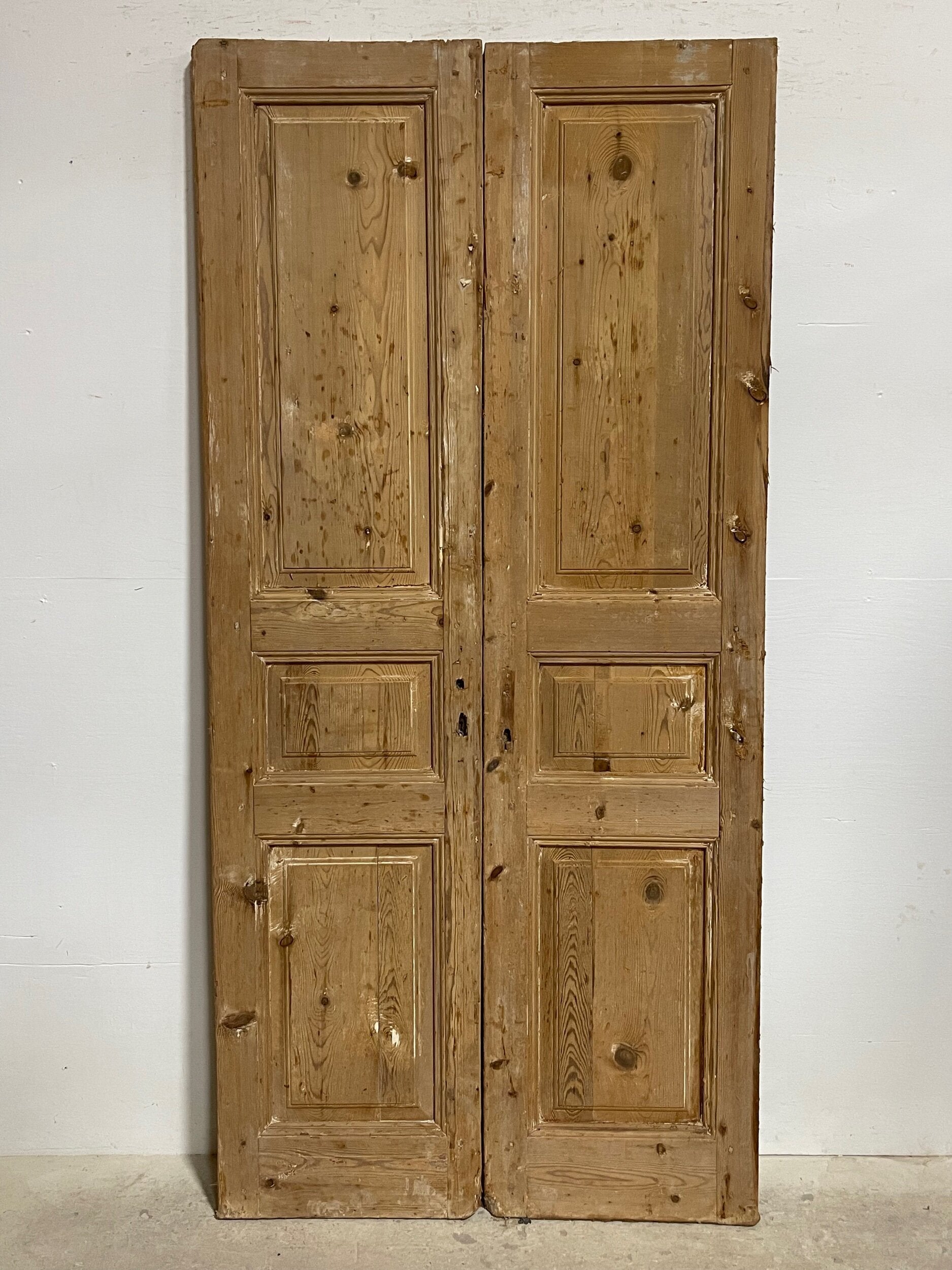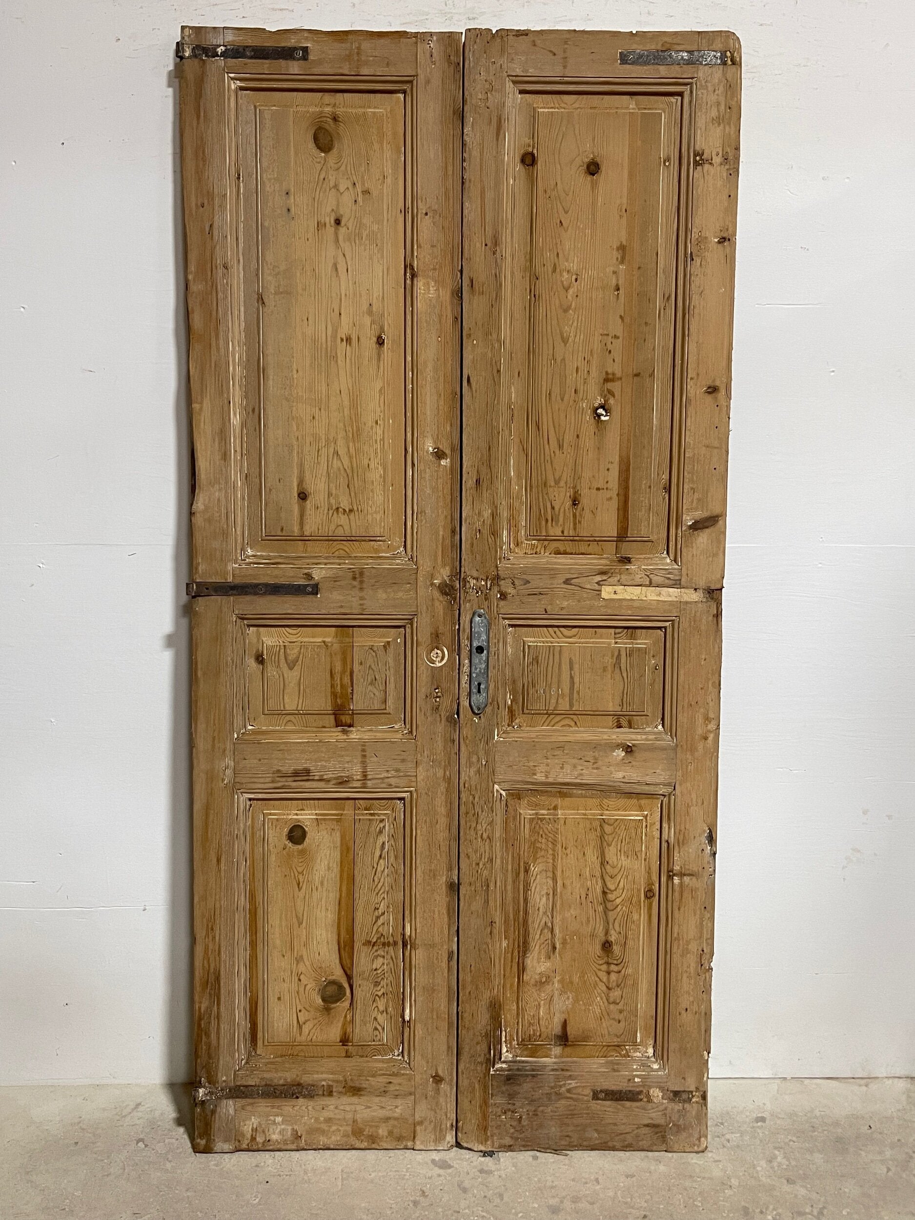 Antique French doors imported from Egypt, made out of massive East European pine. These doors were pulled out of a building and are architectural salvage. They are not not brand new and has wear and tear.