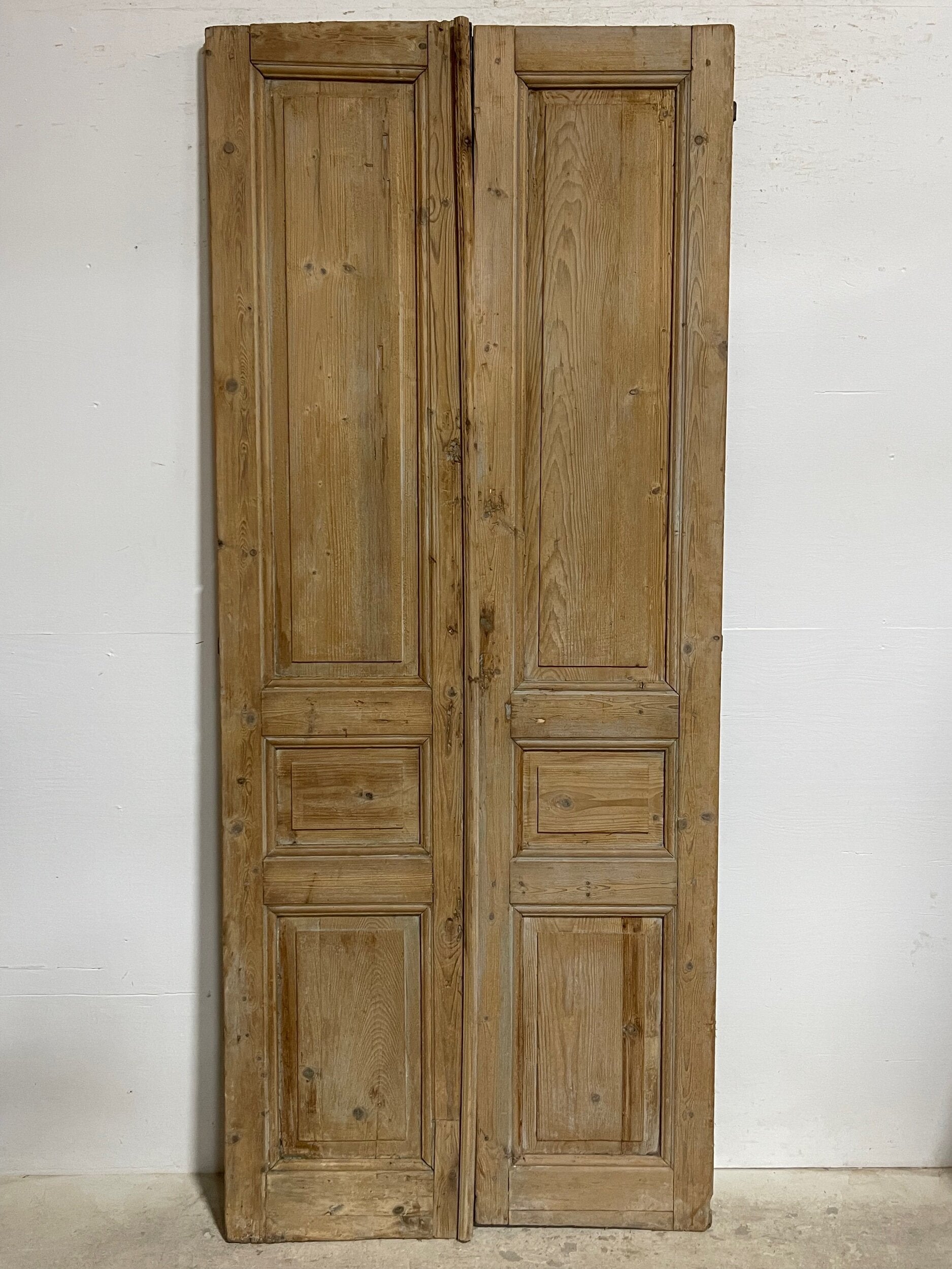 Antique French doors imported from Egypt, made out of massive East European pine. These doors were pulled out of a building and are architectural salvage. They are not not brand new and has wear and tear.