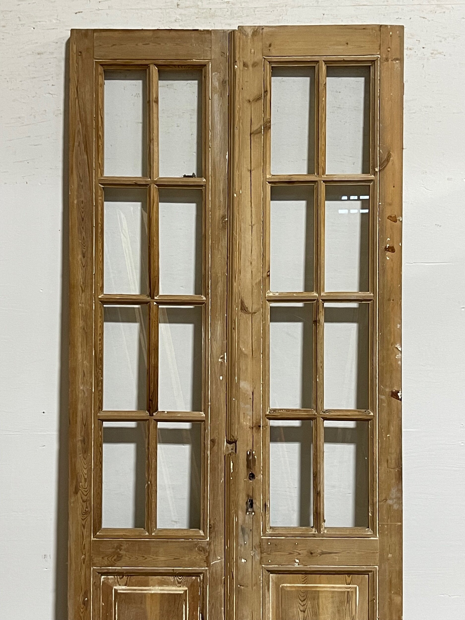 Antique French doors imported from Egypt, made out of massive East European pine. These doors were pulled out of a building and are architectural salvage. They are not not brand new and has wear and tear.