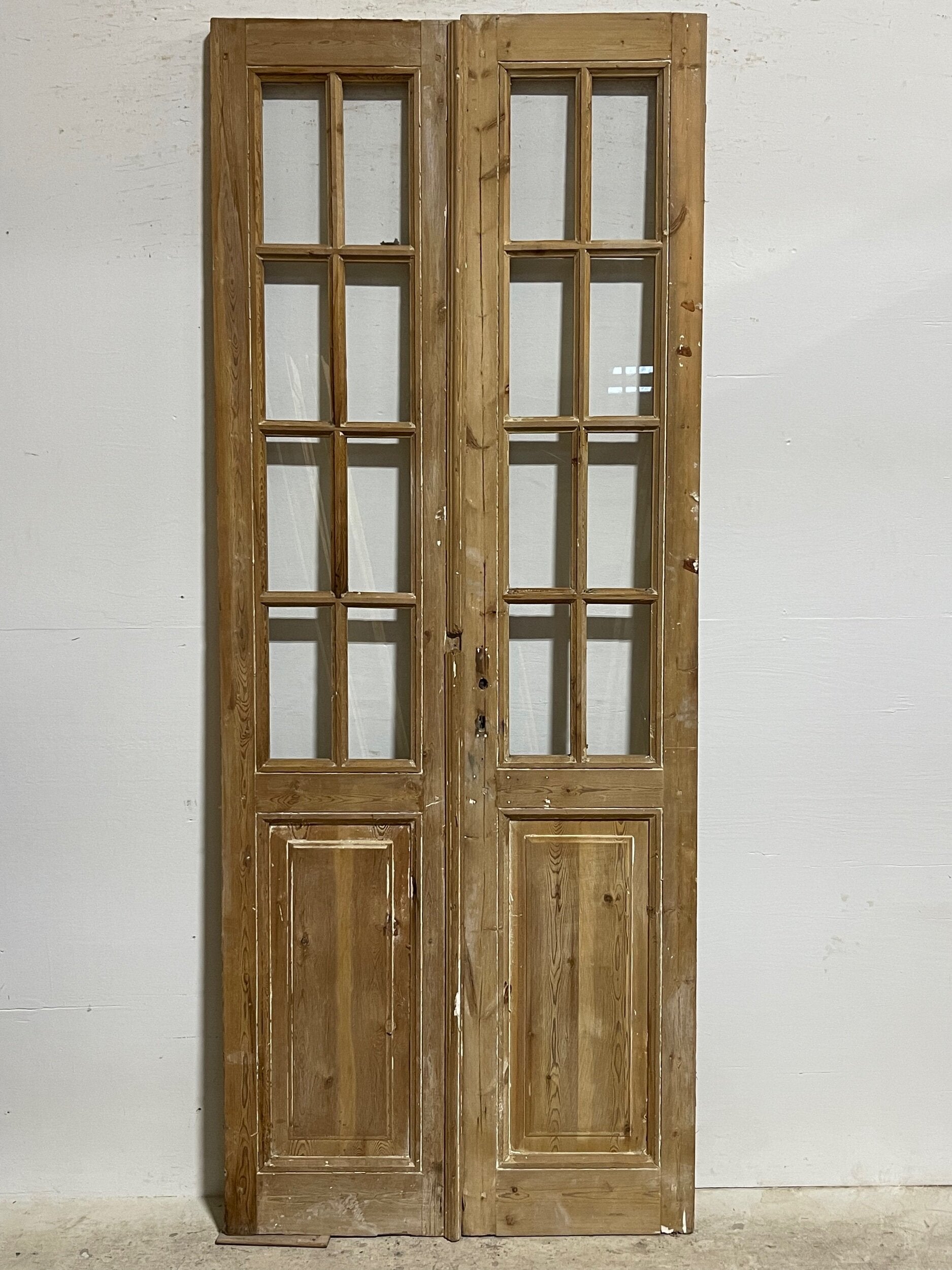 Antique french panel doors with glass (94 x 37) I040