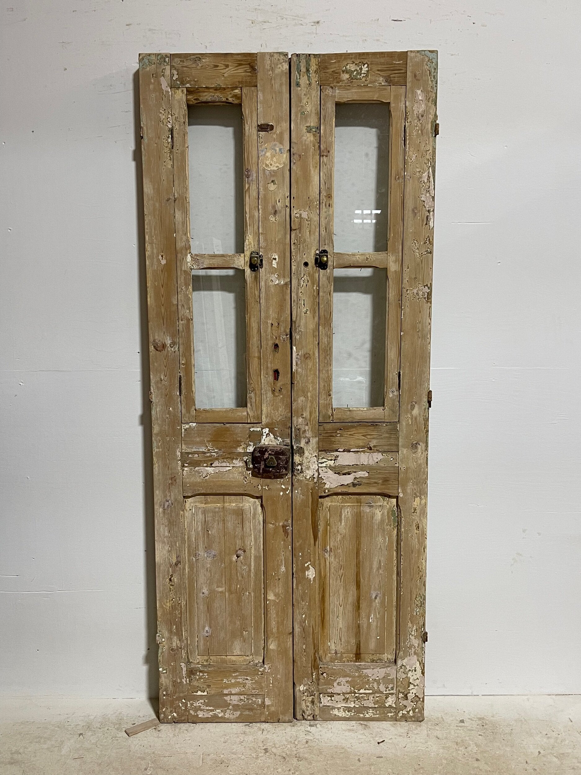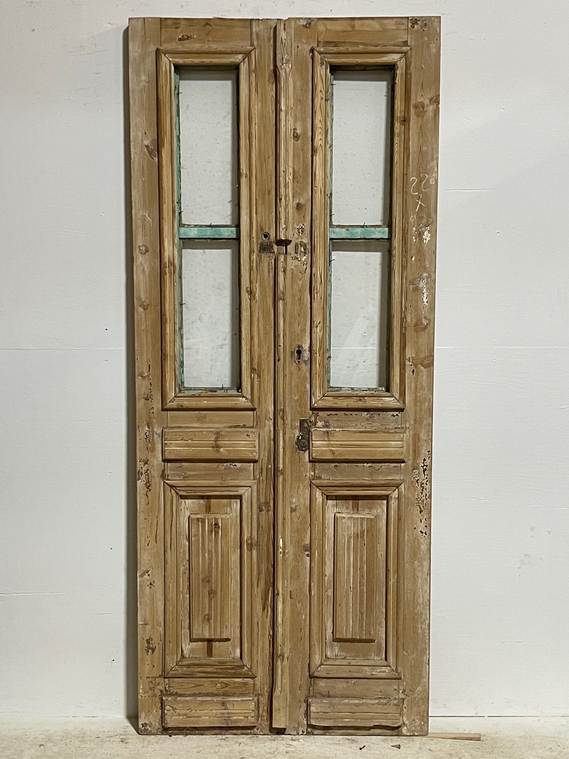 Antique French doors imported from Egypt, made out of massive East European pine. These doors were pulled out of a building and are architectural salvage. They are not not brand new and has wear and tear.